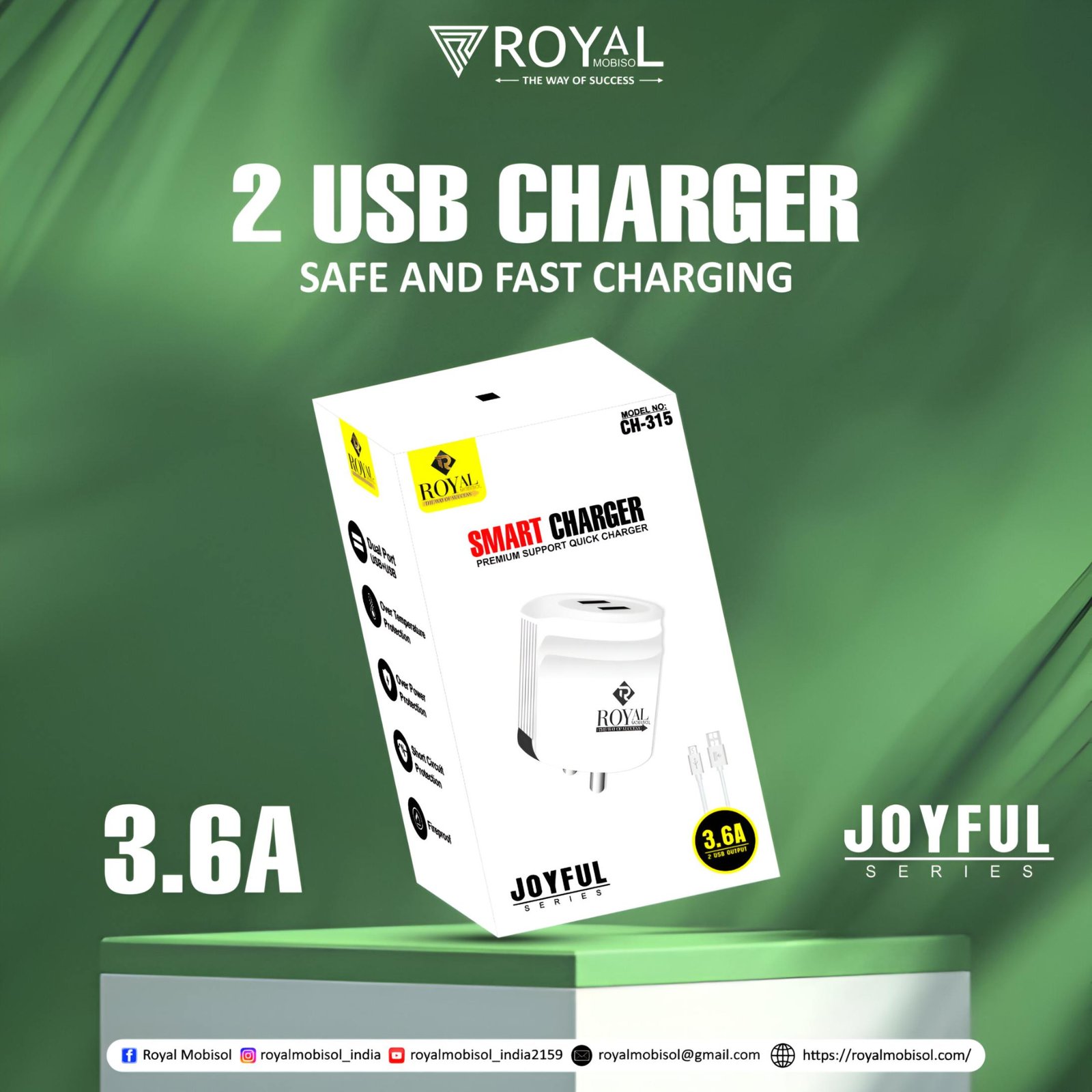 ROYAL CH-315 3.6 AMP,DUAL USB CHARGER WITH MICRO CABLE